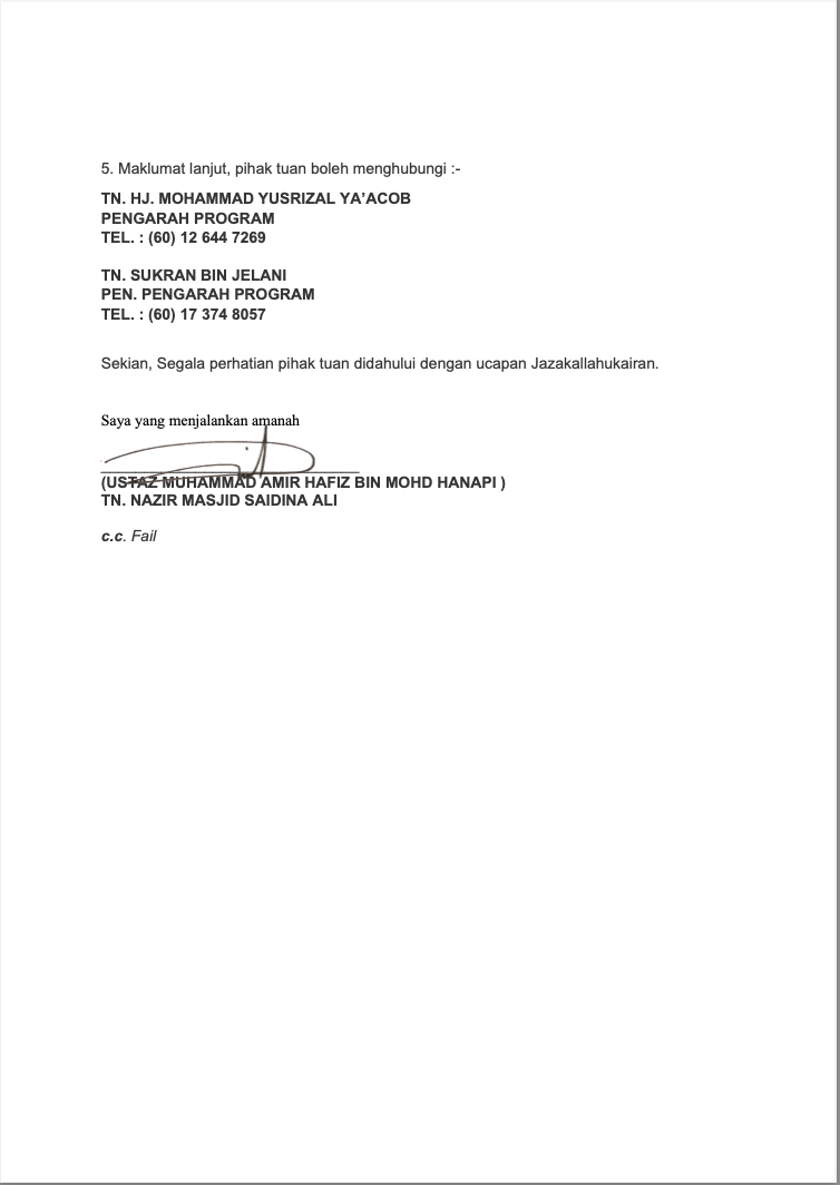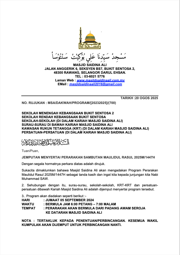 Tel: (60) 3 6021 5776 | EMail : masjidsaidinaali2016@gmail.com