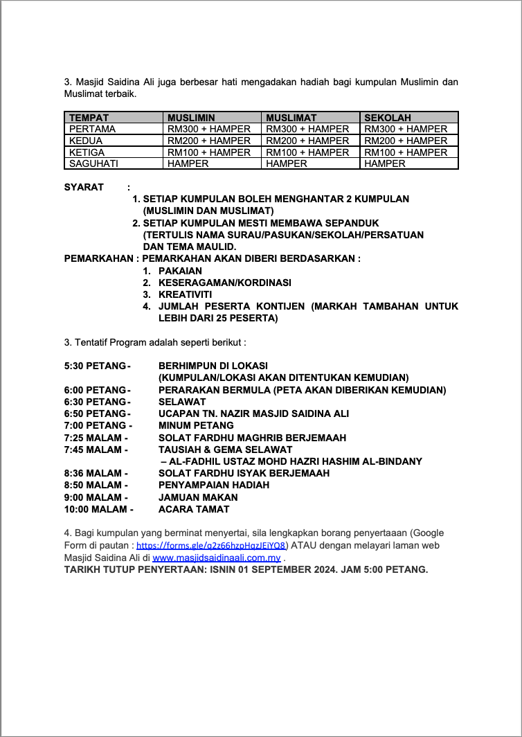 Bagi kumpulan yang berminat menyertai, sila lengkapkan borang penyertaaan (Google Form di pautan : https://forms.gle/q2z66hzpHqzJEiYQ8